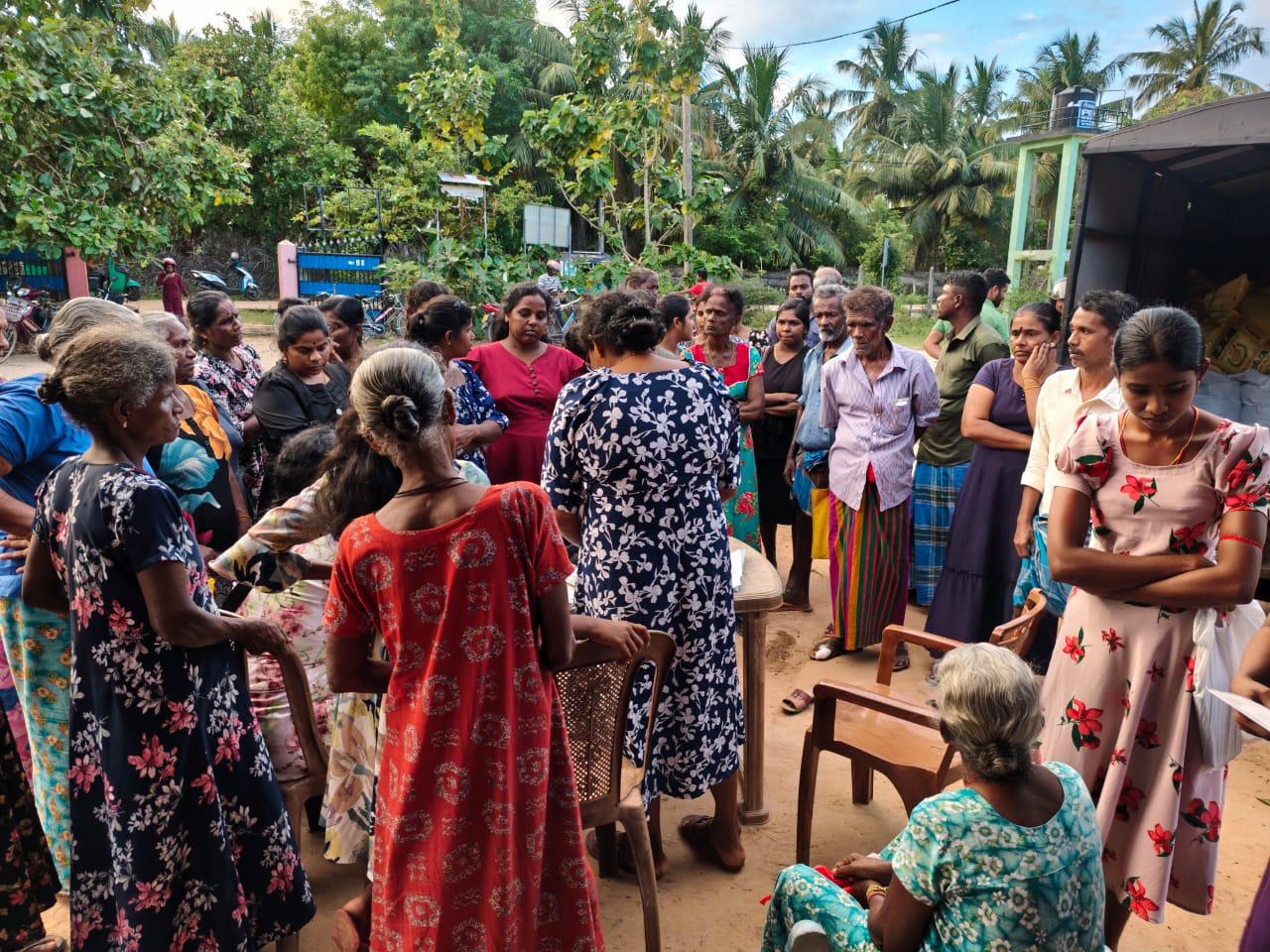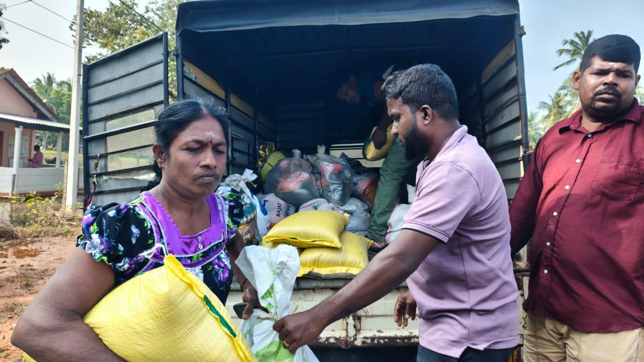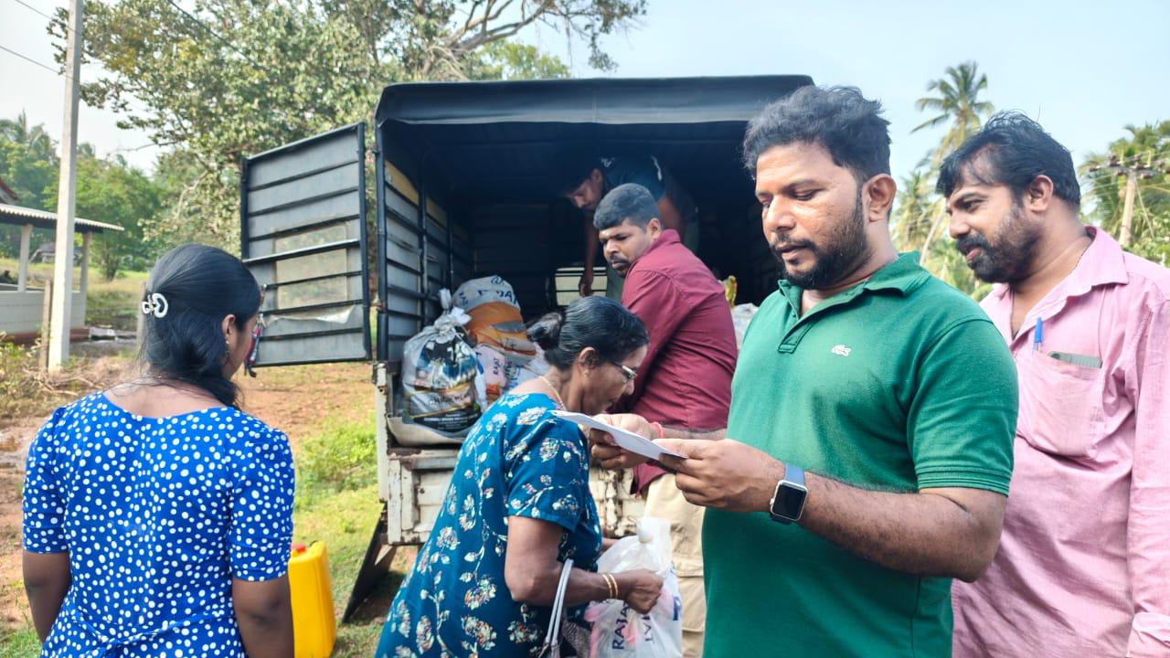 In Puthukudiyiruppu, Mullaitivu, one of the hardest-hit pockets in the North, our team supported 300 families with dry food rations. Many had been relying on neighbours and whatever limited supplies they still had at home, so today’s distributions were vital.