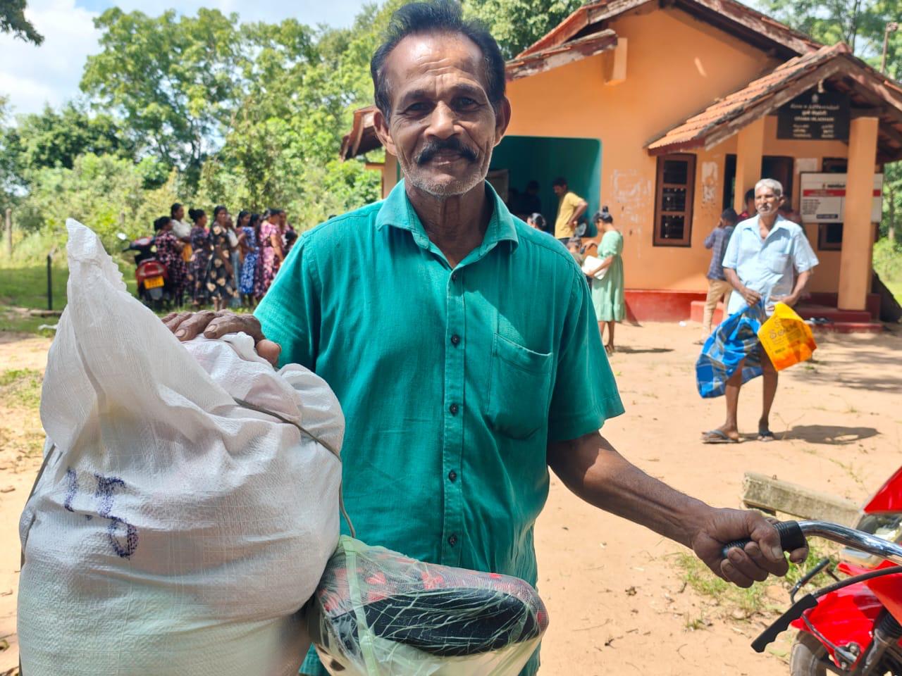 In Nachchathuwa, our teams focused on reaching families who are often the last to receive help: people with disabilities and those who are unable to leave their homes. Instead of large distribution points, the team created smaller access locations and then went door to door to ensure every non-able-bodied person on our list was reached.