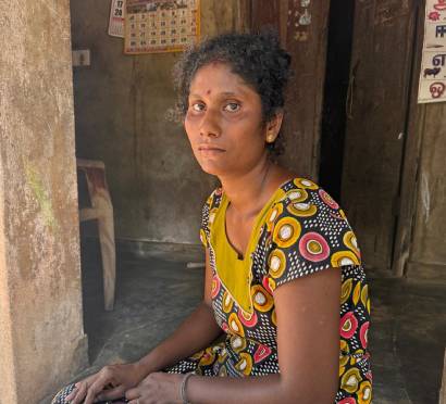Sureshini, 34, lives in Batticaloa with her husband, two daughters aged seven and three, and her father. Her husband works whenever he can, but some days they have no food and borrow from relatives. They pay 20,000 rupees every month for a loan. Sureshini works hard and hopes to fix their house and educate her daughters.